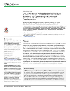 CYK4 promotes antiparallel microtubule bundling by optimizing MKLP1 neck conformation.