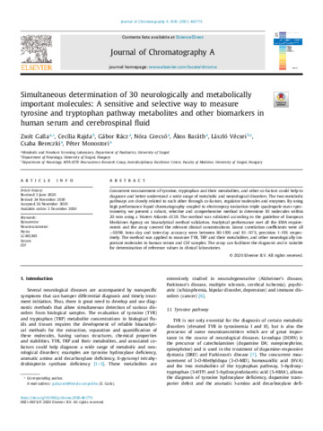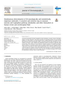 Simultaneous determination of 30 neurologically and metabolically important molecules: A sensitive and selective way to measure tyrosine and tryptophan pathway metabolites and other biomarkers in human serum and cerebrospinal fluid.