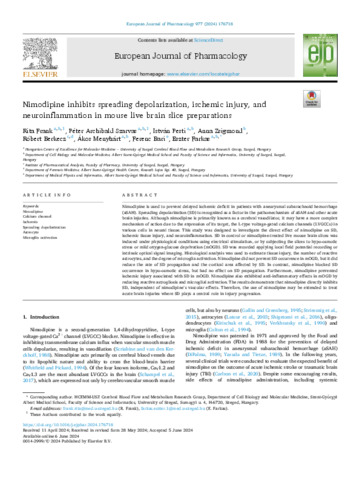 Nimodipine inhibits spreading depolarization, ischemic injury, and neuroinflammation in mouse live brain slice preparations.