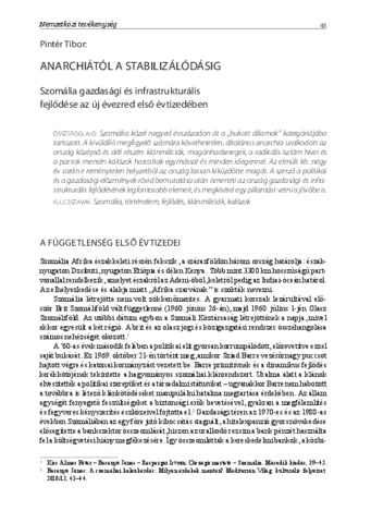 Anarchiától a stabilizálódásig : Szomália gazdasági és infrastrukturális fejlődése az új évezred első évtizedében.