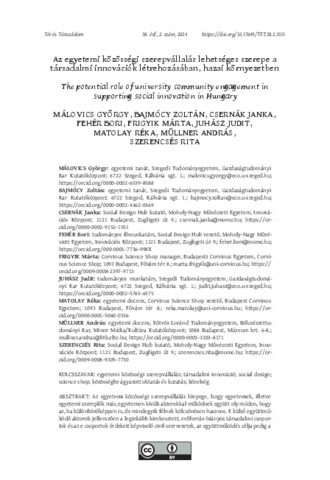 Az egyetemi közösségi szerepvállalás lehetséges szerepe a társadalmi innovációk létrehozásában hazai kontextusban [The potential role of university community engagement in supporting social innovation in Hungary].