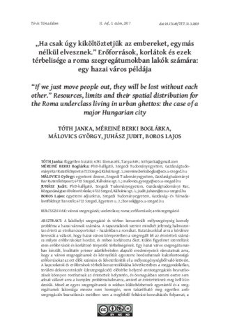 „Ha csak úgy kiköltöztetjük az embereket, egymás nélkül elvesznek.” Erőforrások, korlátok és ezek térbelisége a roma szegregátumokban lakók számára: egy hazai város példája.