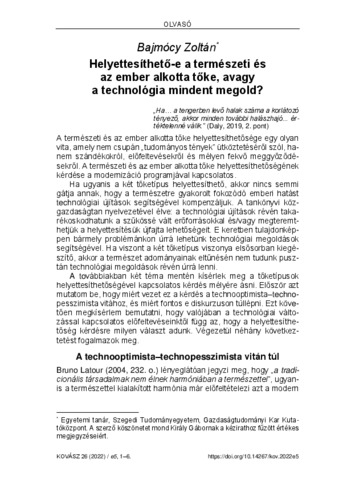 Helyettesíthető-e a természeti és az ember alkotta tőke, avagy a technológia mindent megold? [Are natural and man-made capital complements or substitutes, or does technology solve everything?].