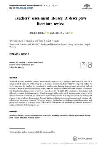 | Folyóirat/kiadvány címe: | HUNGARIAN EDUCATIONAL RESEARCH JOURNAL (HERJ) | ||