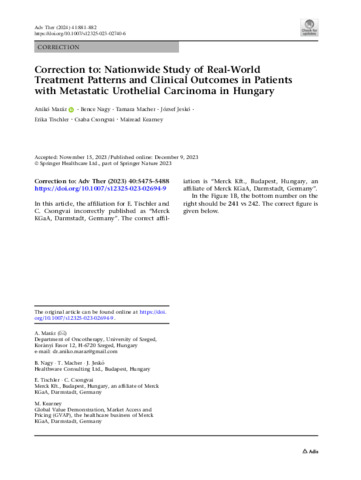 Correction to: Nationwide Study of Real-World Treatment Patterns and Clinical Outcomes in Patients with Metastatic Urothelial Carcinoma in Hungary.