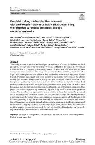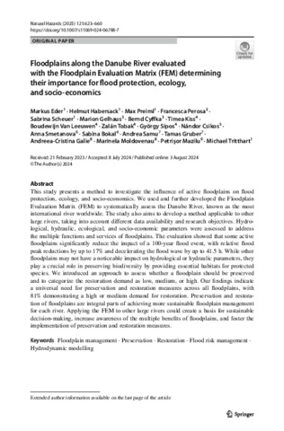 Floodplains along the Danube River evaluated with the Floodplain Evaluation Matrix (FEM) determining their importance for flood protection, ecology, and socio-economics.