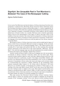 Signifyin' the Unsayable Past in Toni Morrison's Beloved: The Case of the Newspaper Cutting.