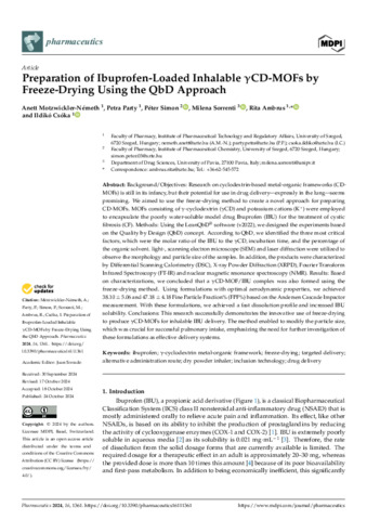 Preparation of Ibuprofen-Loaded Inhalable γCD-MOFs by Freeze-Drying Using the QbD Approach.