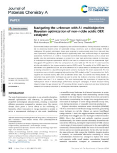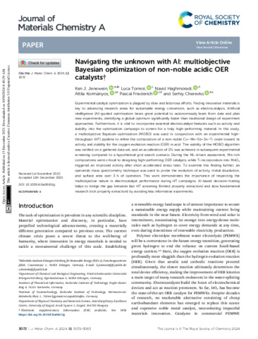 Navigating the unknown with AI: multiobjective Bayesian optimization of non-noble acidic OER catalysts.