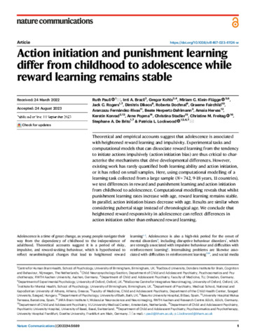 Action initiation and punishment learning differ from childhood to adolescence while reward learning remains stable.