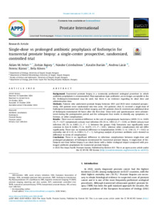 Single-dose vs prolonged antibiotic prophylaxis of fosfomycin for transrectal prostate biopsy: a single-center prospective, randomized, controlled trial.