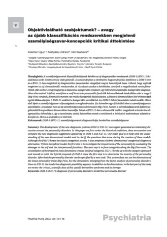 Objektivizálható szubjektumok? – avagy az újabb klasszifikációs rendszerekben megjelenő személyiségzavar-koncepciók kritikai áttekintése [How can subjects be objectified? - or a critical overwiev of the concept of personality disorders appearing in the new classificational systems].