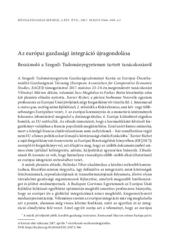 Az európai gazdasági integráció újragondolása: Beszámoló a Szegedi Tudományegyetemen tartott tanácskozásról.