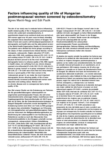 Factors influencing quality of life of Hungarian postmenopausal women screened by osteodensitometry.