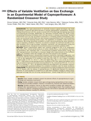 Effects of Variable Ventilation on Gas Exchange in an Experimental Model of Capnoperitoneum: A Randomized Crossover Study.