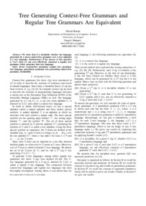 Tree generating context-free grammars and regular tree grammars are equivalent.