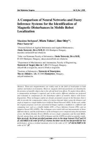 A Comparison of Neural Networks and Fuzzy Inference Systems for the Identification of Magnetic Disturbances in Mobile Robot Localization.