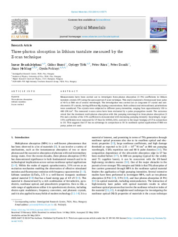 Three-photon absorption in lithium tantalate measured by the Z-scan technique.