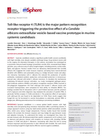 Toll-like receptor 4 (TLR4) is the major pattern recognition receptor triggering the protective effect of a Candida albicans extracellular vesicle-based vaccine prototype in murine systemic candidiasis.