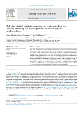 Mediation effect of scientific competency on relationship between inductive reasoning and domain-general and domain-specific problem solving.