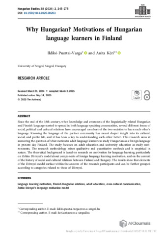 Why Hungarian? Motivations of Hungarian language learners in Finland.