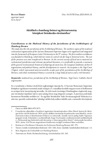 Adalékok a hamburg-brémai egyháztartomány középkori bíráskodás-történetéhez.