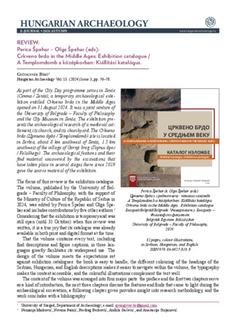 Review: Perica Špehar – Olga Špehar (eds): Crkveno brdo in the Middle Ages: Exhibition catalogue / A Templomdomb a középkorban: Kiállítási katalógus.