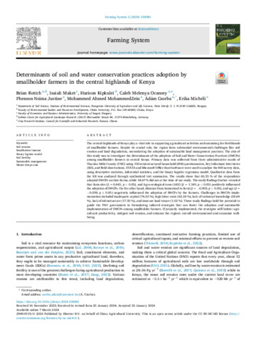 Determinants of soil and water conservation practices adoption by smallholder farmers in the central highlands of Kenya.