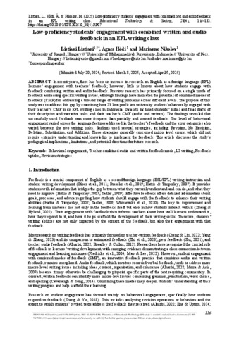 Low-proficiency students' engagement with combined written and audio feedback in an EFL writing class.