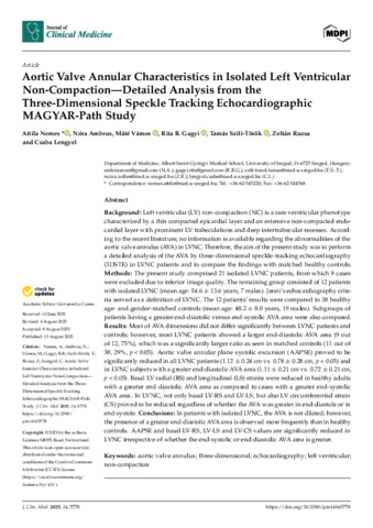 Aortic Valve Annular Characteristics in Isolated Left Ventricular Non-Compaction—Detailed Analysis from the Three-Dimensional Speckle Tracking Echocardiographic MAGYAR-Path Study.
