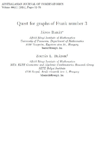 | Folyóirat/kiadvány címe: | AUSTRALASIAN JOURNAL OF COMBINATORICS | ||
