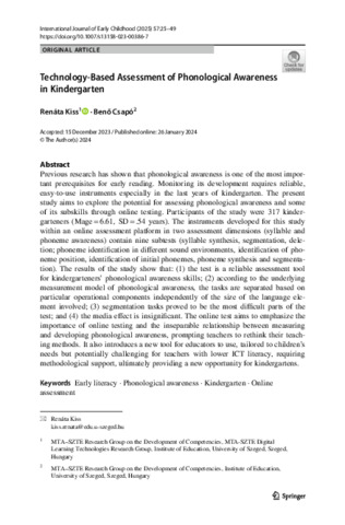 Technology-Based Assessment of Phonological Awareness in Kindergarten.