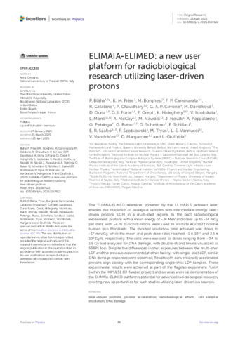 Blaha P.; Prise K. M.; Borghesi M.; Cammarata F. P.; Catalano R.; Chaudhary P.; Cirrone G. A. P.; Davidkova M.; Doria D.; Forte G. I.; Grepl F.; Hideghéty Katalin; Istokskaia V.; Manti L.; Mccay A.; Navratil M.; Novak J.; Pappalardo A.; Petringa G.; Russo G.; Schettino G.; Schillaci F.; Szabó Emilia Rita; Szotkowski P.; Tryus M.; Vannucci L. E.; Vondracek V.; Margarone D.; Giuffrida L.: