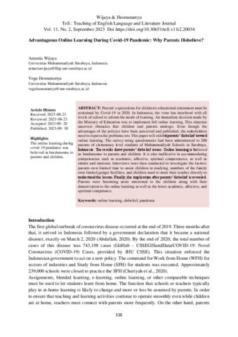 Advantageous Online Learning During Covid-19 Pandemic: Why Parents Disbelieve?