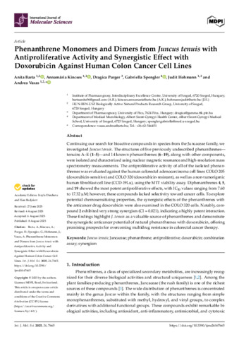 Phenanthrene Monomers and Dimers from Juncus tenuis with Antiproliferative Activity and Synergistic Effect with Doxorubicin Against Human Colon Cancer Cell Lines.