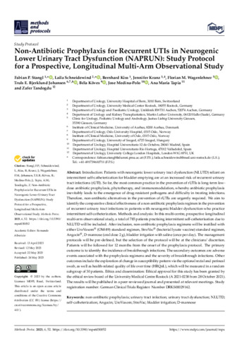 Non-Antibiotic Prophylaxis for Recurrent UTIs in Neurogenic Lower Urinary Tract Dysfunction (NAPRUN): Study Protocol for a Prospective, Longitudinal Multi-Arm Observational Study.