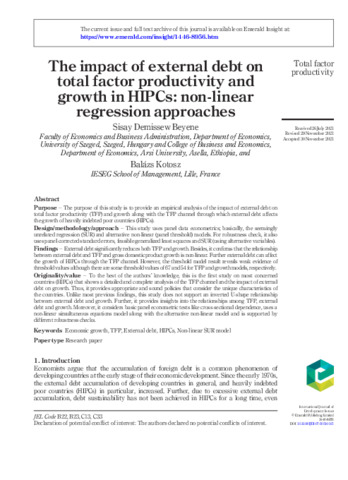 The impact of external debt on total factor productivity and growth in HIPCs: non-linear regression approaches.