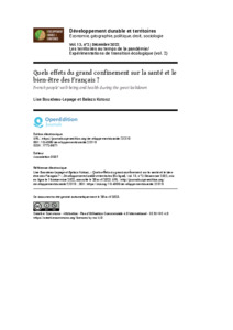Quels effets du grand confinement sur la santé et le bien-être des Français? [French people' well-being and health during the great lockdown].