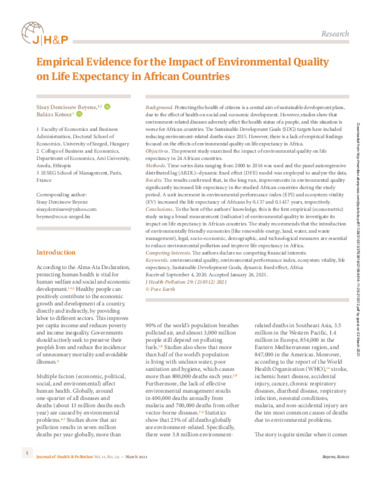 Empirical Evidence for the Impact of Environmental Quality on Life Expectancy in African Countries.