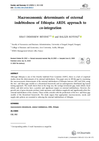 1588970X-SocietyandEconomyMacroeconomicdeterminantsofexternalindebtednessofEthiopiaARDLapproachtoco-integration.pdf - Megjelent verzió Download (1MB) | Előnézet |