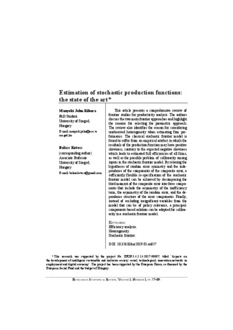 Estimation of stochastic production functions: the state of the art.