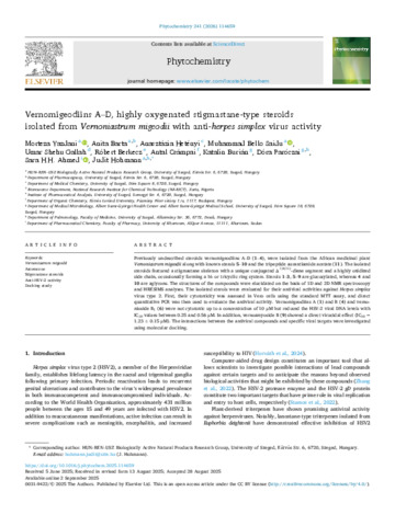 Vernomigeodiins A–D, highly oxygenated stigmastane-type steroids isolated from Vernoniastrum migeodii with anti-herpes simplex virus activity.