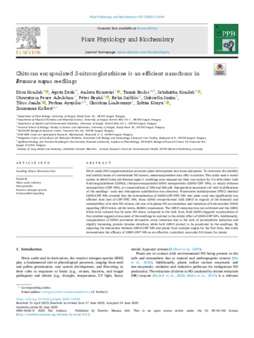 Chitosan encapsulated S-nitrosoglutathione is an efficient nanodonor in Brassica napus seedlings.