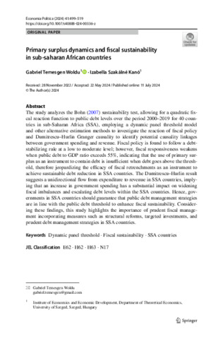 Primary surplus dynamics and fiscal sustainability in sub-saharan African countries.