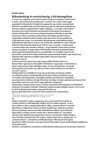 Kifosztottság és sorstalanság a Sátántangóban.