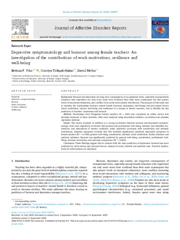 Depressive symptomatology and burnout among female teachers: An investigation of the contributions of work motivations, resilience and well-being.