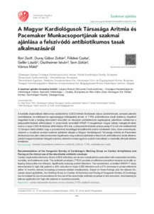 A Magyar Kardiológusok Társasága Aritmia és Pacemaker Munkacsoportjának szakmai ajánlása a felszívódó antibiotikumos tasak alkalmazásáról.