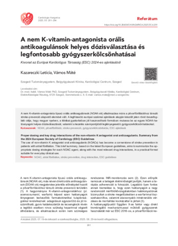 A nem K-vitamin-antagonista orális antikoagulánsok helyes dózisválasztása és legfontosabb gyógyszerkölcsönhatásai : Kivonat az Európai Kardiológus Társaság (ESC) 2024-es ajánlásából.