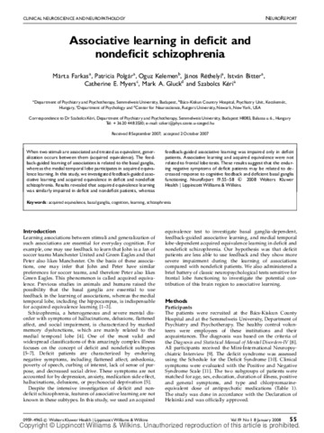 Farkas Márta; Polgár Patrícia; Kelemen Oguz; Réthelyi János; Bitter István; Myers Catherine E.; Gluck Mark A.; Kéri Szabolcs: