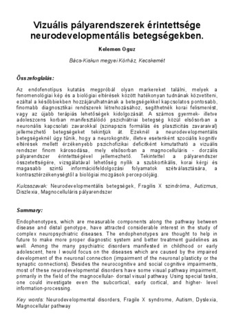 Kelemen Oguz: Vizuális pályarendszerek érintettsége neurodevelopmentális betegségekben [Visual pathways are affected in neurodevelopmental diseases].
